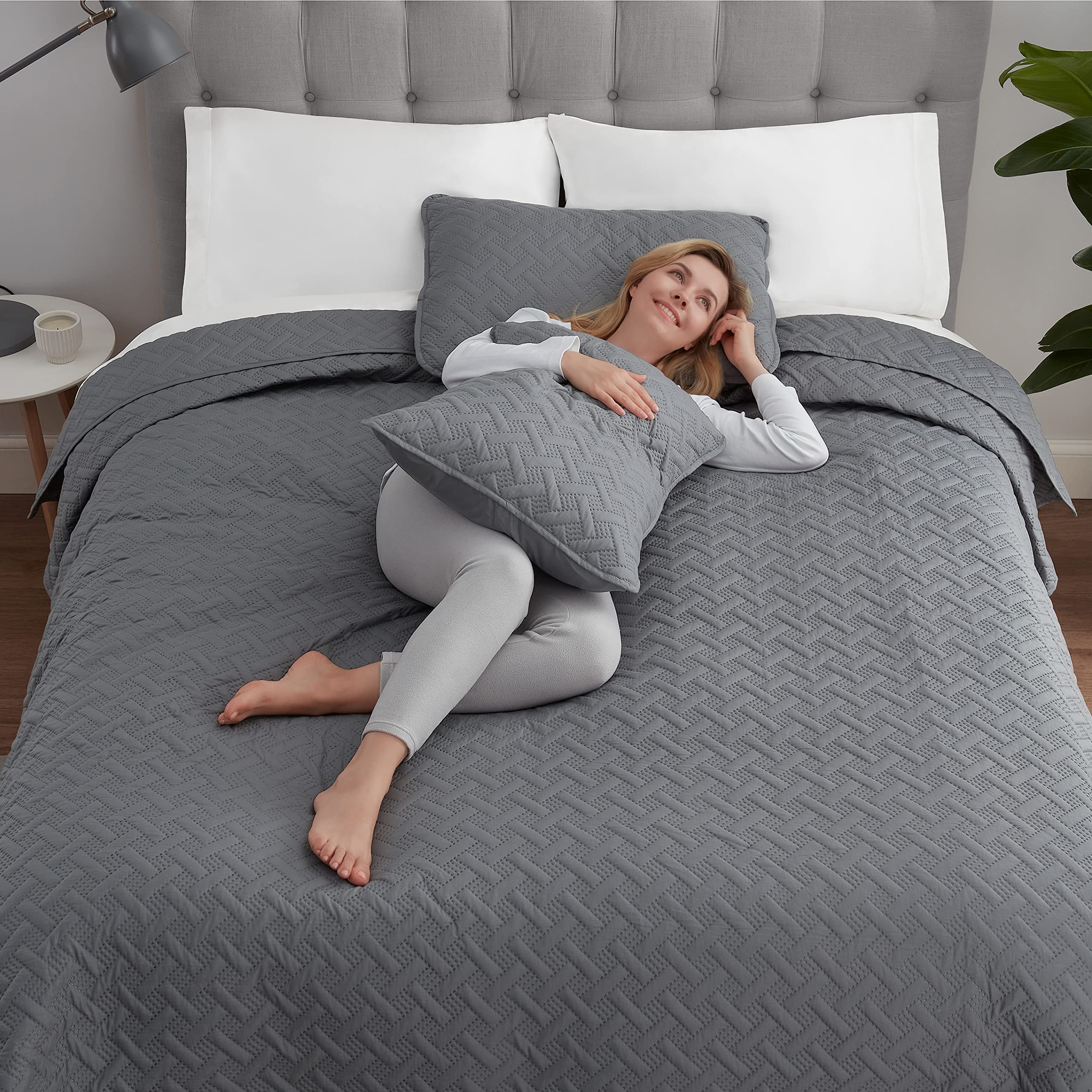 - LUXURY DESIGN - Our quilt bedding set features a delicate basketweave quilt design that is simple and elegant to elevate your bedroom decor. Additionally, the strong pinsonic quilt design will prevent fraying, offering a durable quilt and pillow set perfect for any bedrooms, guest rooms, or Airbnbs