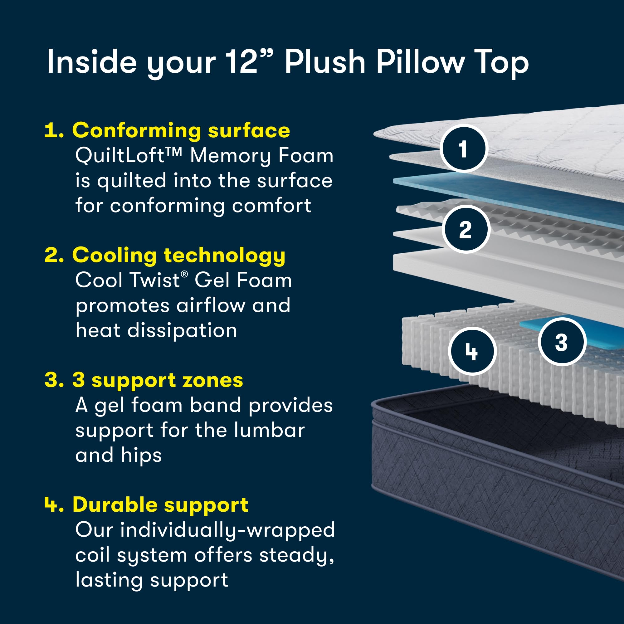 - MOTION CONTROL - The mattress contains a supportive coil system that is designed to minimize motion transfer throughout the night and minimize any disturbances