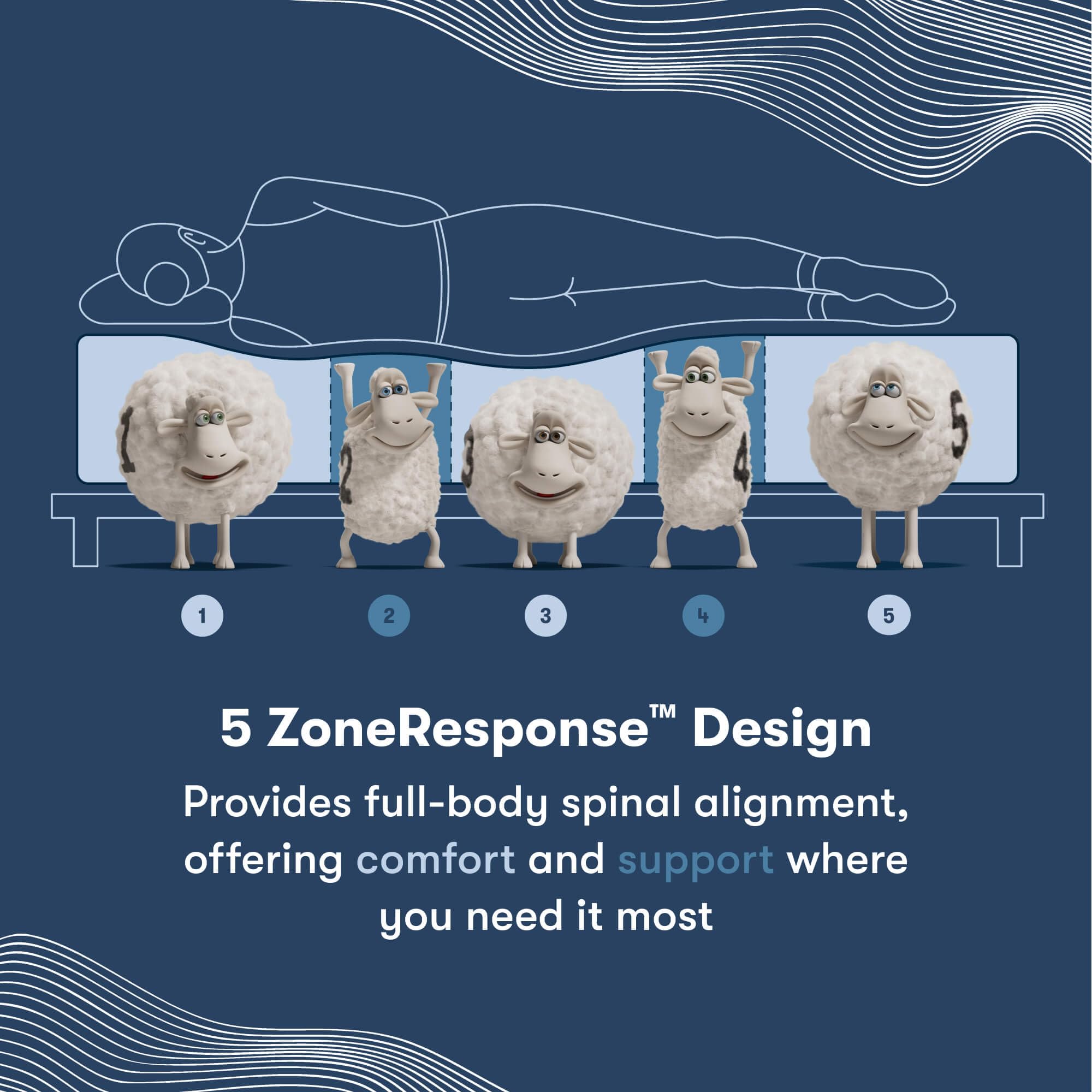 - Our 5 ZoneResponse design provides full-body spinal alignment designed to offer comfort and support where you need it most